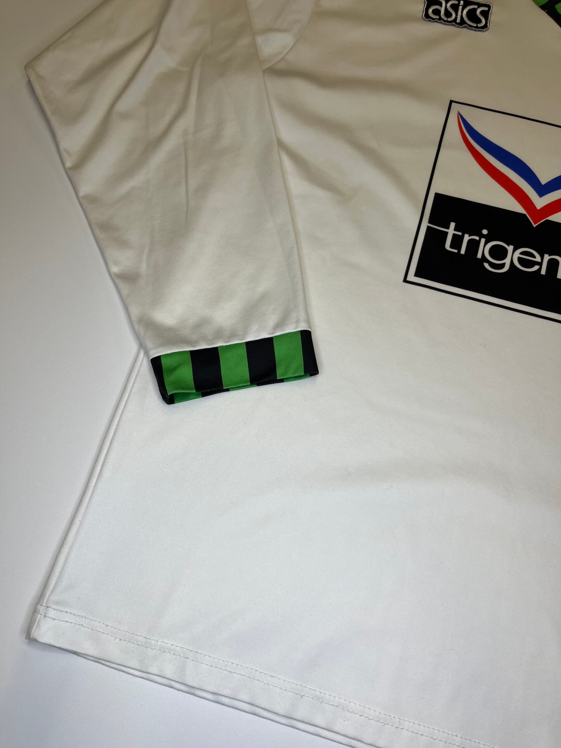 Es handelt sich um ein gebrauchtes Trikot. Eventuelle Mängel sind oben beschrieben und auf den Fotos zu sehen.