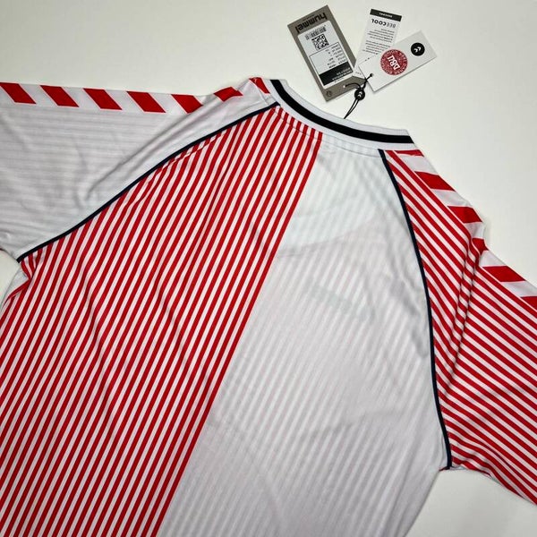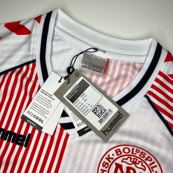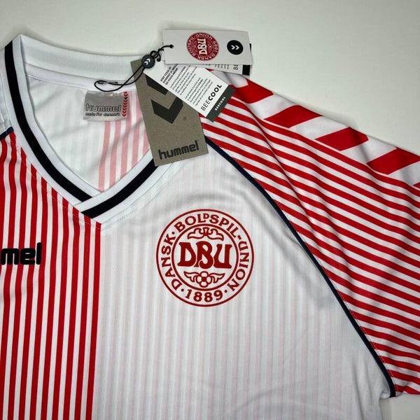 Beschreibung: Originales Away Trikot von Dänemark aus dem Jahr 2023 als Special Edition "1986", wie es im Jahre 1986 bei der Weltmeisterschaft von den Dänen getragen wurde.