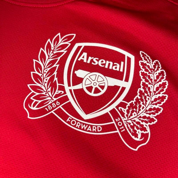 Beschreibung: Originales Home Trikot von Arsenal London aus der Saison 2011/12 mit Premier League Patches und originalem Nameset von Legende Thierry Henry mit der Nummer 12, so wie bei seiner letzten Rückkehr zu Arsenal getragen. Auf der Innenseite des Clublogos findet sich der Schriftzug "Victoria Concordi Crescit" - lateinisch für „Sieg durch Harmonie“.