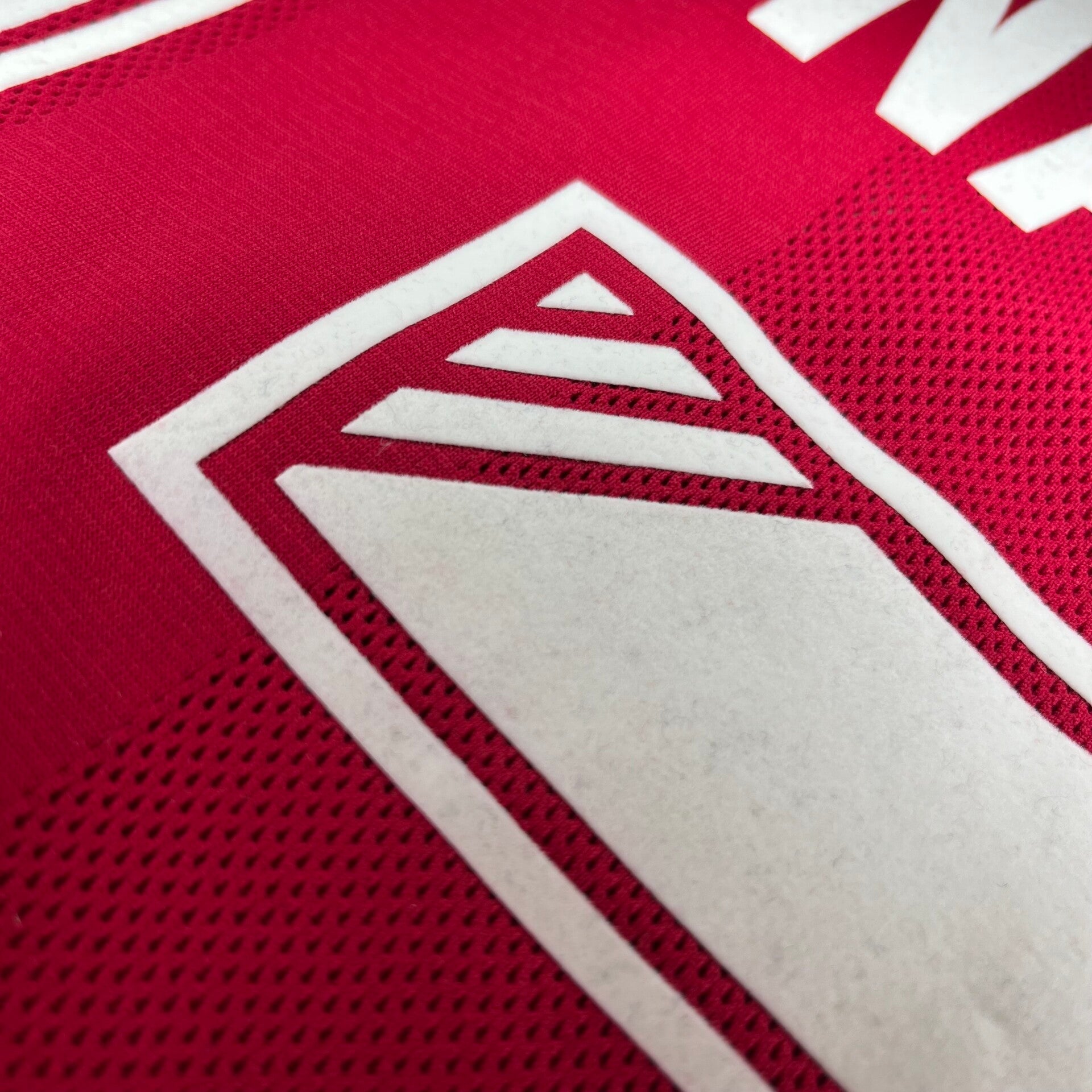 Zustand: 8/10 guter bis sehr guter Zustand - Leuchtende Farben, minimale Abnutzung im Stoff und auf dem Sponsor (kleiner Riss im "r" und im Stoff darunter), Nameset hinten in exzellentem Zustand. Siehe Fotos für weitere Details.
