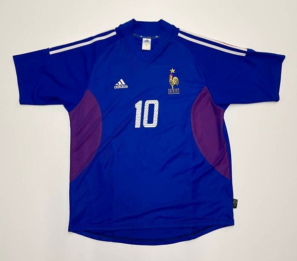 Beschreibung: Originales Home Trikot von Frankreich wie bei der WM 2002 in Japan und Südkorea von Legende Zinedine Zidan mit der Nummer 10 getragen.
