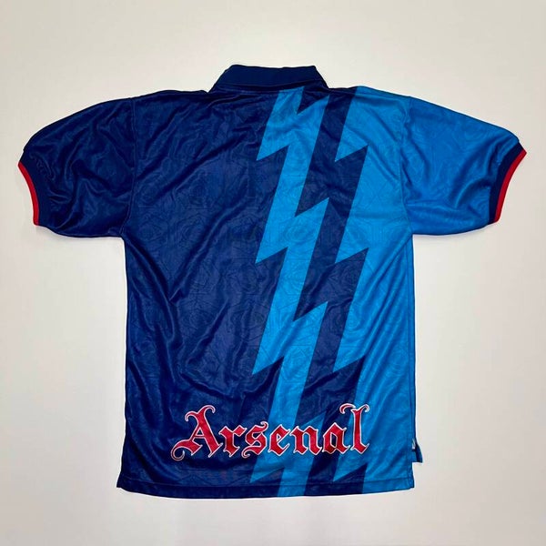 Beschreibung: Originales Away Trikot vom FC Arsenal London aus der Saison 1995/96 designed von Drake Ramberg. Eines der beliebtesten und legendärsten Trikots vom FC Arsenal. Getragen von Spielern wie Ian Wright, Dennis Bergkamp, Tony Adams und Ray Parlour.