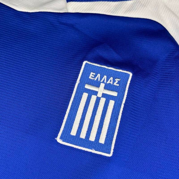 Beschreibung: Originales Away Trikot von Griechenland mit Legende Angelos Charisteas mit der Nummer 9, der die Griechen bei der EURO 2004 in Portugal zum Titel köpfte. Griechenland gewann die EM mit einem unvergesslichen Titel unter Otto Rehagel mit einem 1:0 gegen Portugal durch den Siegtreffer von Charisteas.