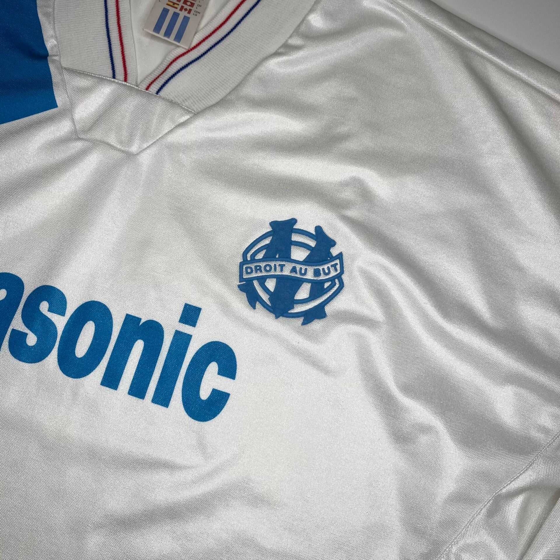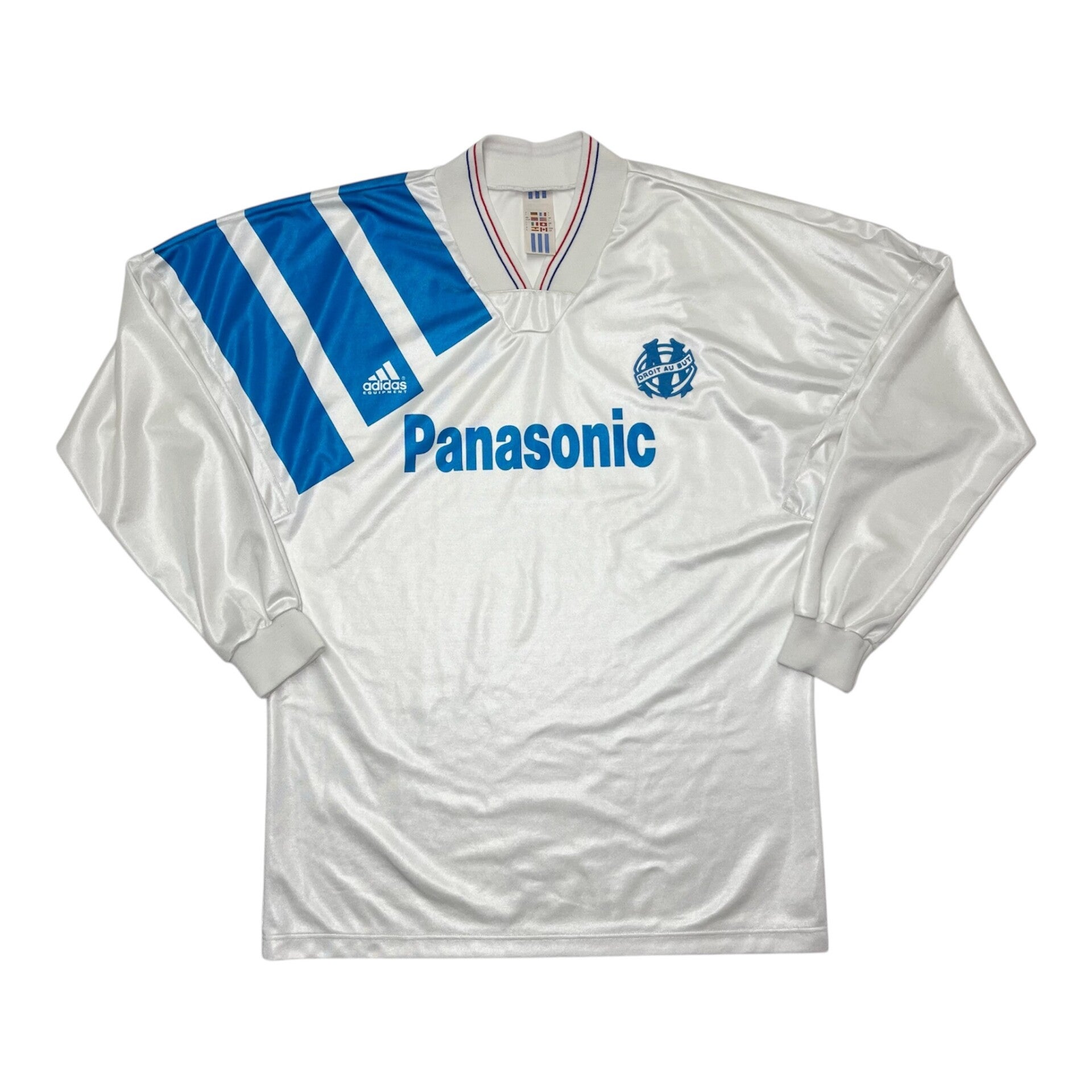 Beschreibung: Originales Home Trikot von Olympique Marseille aus der Saison 1991/92 in der seltenen Langarm Version. In diesem Trikot wurde Marseille 91 und 92 Meister in Frankreich. Im Kader spielten Legenden wie Papin, Waddle, Tigana, Abedi Pele und Didier Deschamps.