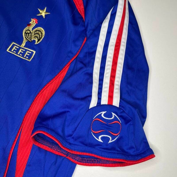Beschreibung: Originales Home Trikot von Frankreich mit der Legende Zinedine Zidane #10, wie bei der WM 2006 in Deutschland getragen. Ikonisches Adidas Teamgeist Design.