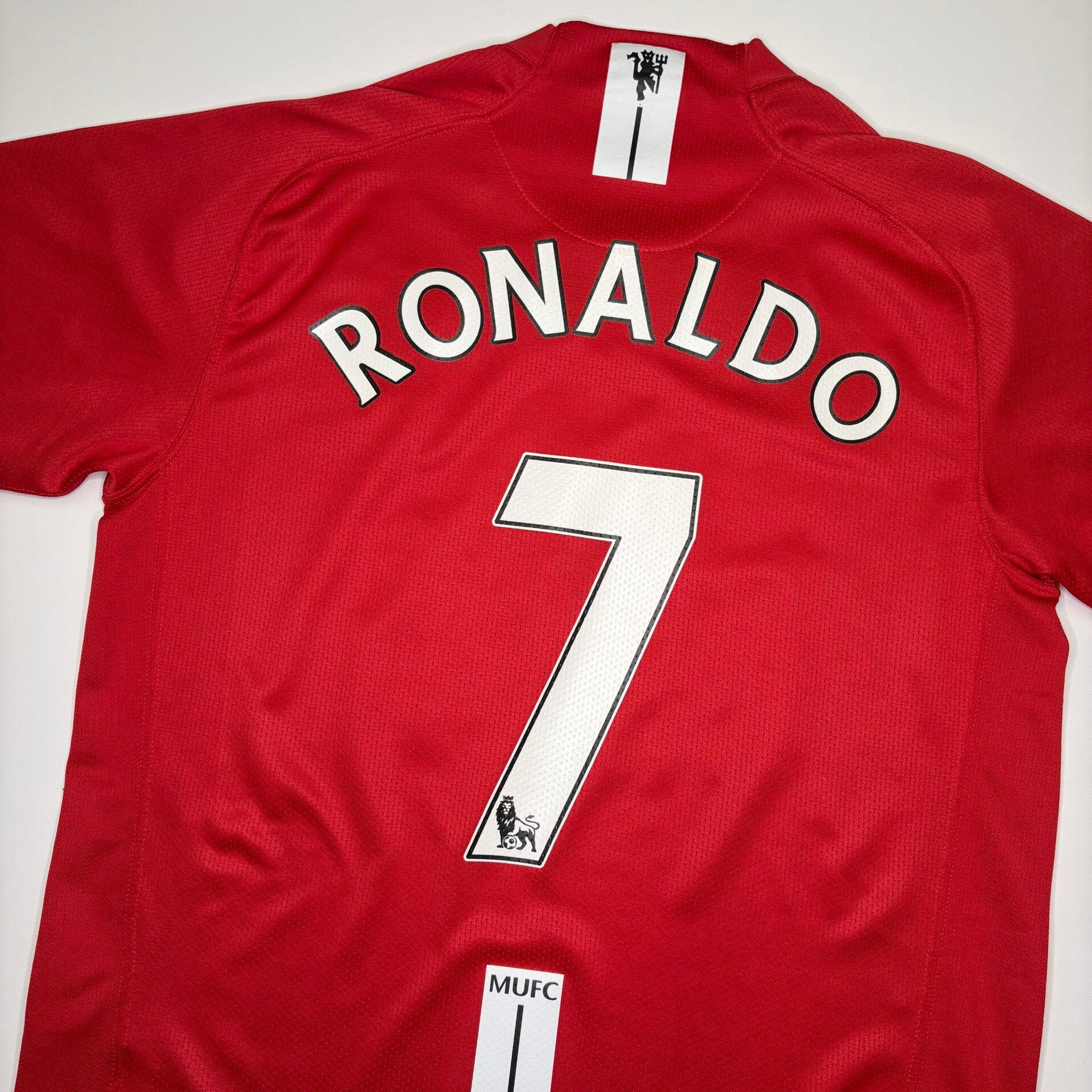 Beschreibung: Originales Home Trikot von Manchester United aus der Saison 2007/08 mit dem Premier League Nameset von Cristiano Ronaldo - kurz "CR7". Im Kader waren unter anderem Spieler wie Wayne Rooney, Paul Scholes, Ryan Giggs und Rio Ferdinand unter Trainer Sir Alex Ferguson.