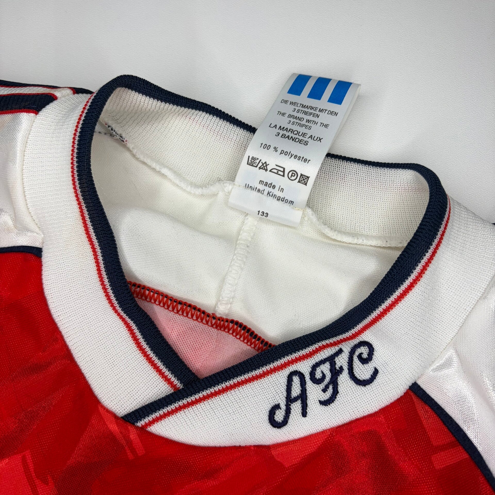 Beschreibung: Originales Home Trikot vom FC Arsenal London aus der Saison 1990/91. Eines der beliebtesten und legendärsten Trikots vom FC Arsenal. Getragen von Legenden aus England wie Ian Wright und Tony Adams. Das Trikot ist nicht die Re-Issue Version, sondern das Original aus 1990/1991.