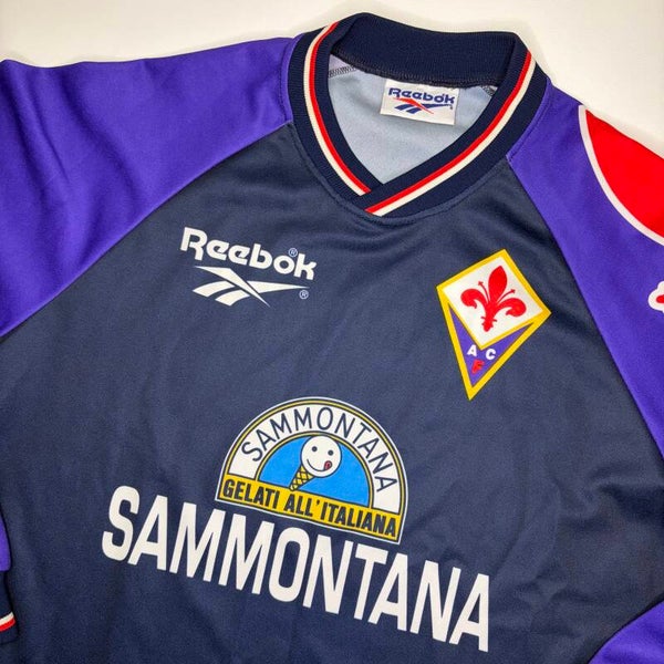 Beschreibung: Originales Warm up / Training Trikot von Fiorentina aus der der Saison 1995/96. Langarm mit sehr schönen Details und Kultsponsor Sammontana. Im Kader stand der argentinische Superstar Gabriel Batistuta.