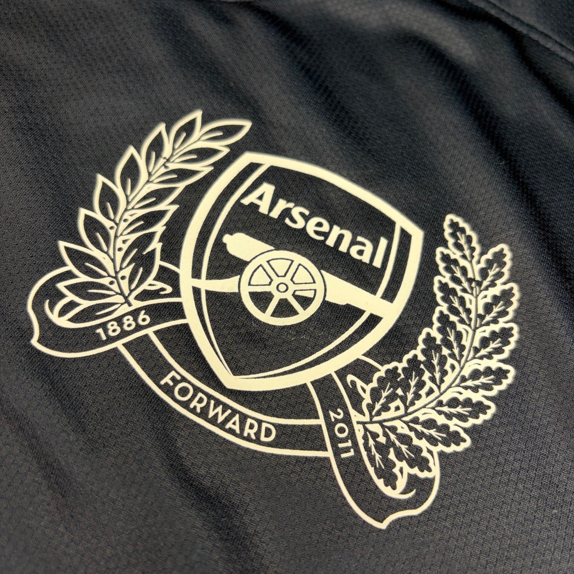 Beschreibung: Originales Away Trikot vom FC Arsenal London aus der Saison 2011/12. Mit originalem Lextra Flock Premier League Nameset vom König Thierry Henry, wie bei seiner legendären Rückkehr in Arsenal 2011/12 getragen. Unter anderem waren im Kader Per Mertesacker, Mikel Arteta, Tomas Rosicky, Alex Song, Gervinho, Robin van Persie und Theo Walcott. Auf der Innenseite des Clublogos findet sich der Schriftzug "Victoria Concordi Crescit" - lateinisch für „Sieg durch Harmonie“.